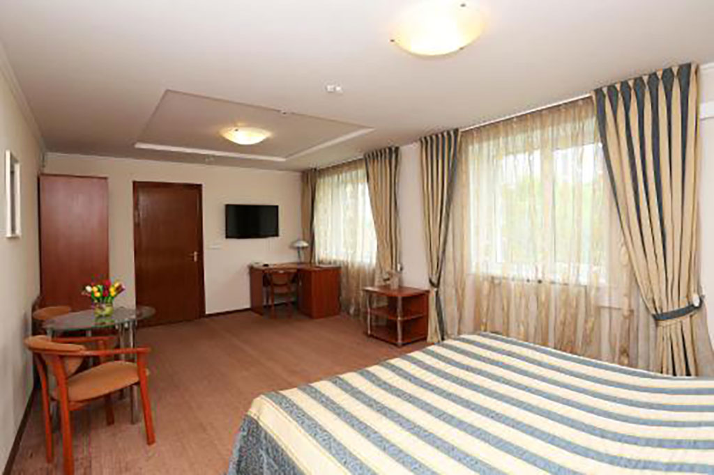 Гостиница идеально подходит спортивным командам и тренерскому составу, возможно организация трансфера и питания для делегаций. В 15-этажной гостинице в 126 номерах может одновременно разместиться до 250 человек. К услугам гостей двухместные номера категории Твин, Дабл, Люкс и 2 номера для людей с ограниченными возможностями. Семьи с детьми могут воспользоваться смежными номерами Дабл и Твин. Стоимость двухместного номера – 310 белорусских рублей. В стоимость включен завтрак по системе «Шведский стол». Бронирование номеров происходит по 100 % предоплате.
